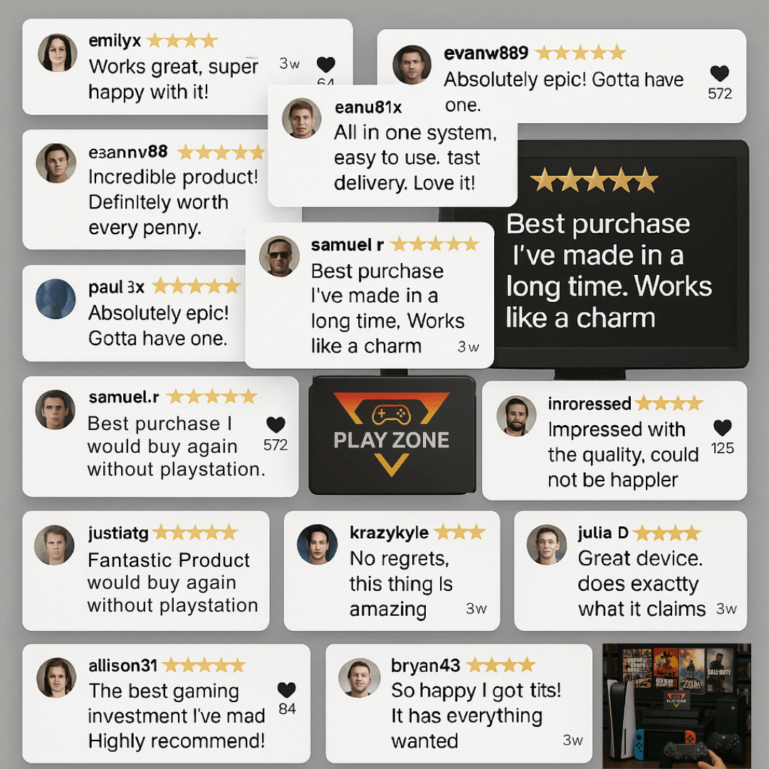 Play Zone™ comes with everything ready to go — no extras, no setup, no hassle. With built-in storage, wireless controllers, and an easy-to-use interface, everything you need is included for the ultimate plug-and-play experience.